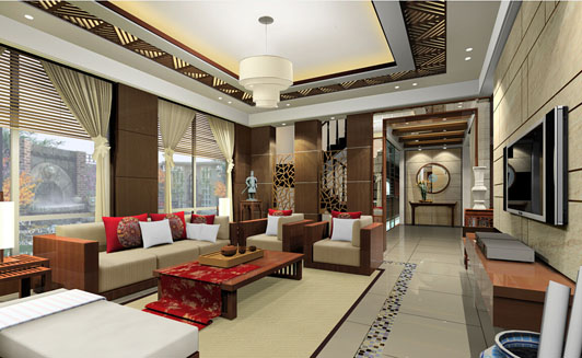 這種風格整體的效果表現(xiàn)得很沉穩(wěn)。它的裝飾品的顏色較深,中式畫等元素,想非常艷麗,室內采用了中國風的紫檀、中式吊燈,講究自然和諧的搭配。