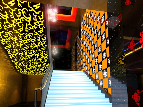 工程說明:設計師在總體構思確定了現代、時尚、新穎,高品味的環境是本設計的使命,新穎的色彩光影材料的搭配,將KTV娛樂場推向時尚、新穎舞臺,也給賓客帶來賞心悅目的高雅環境