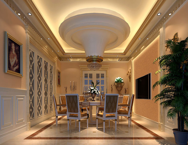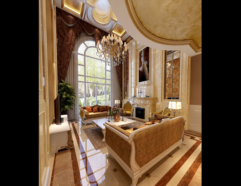 工程說明:整個室內設計局部的雕塑,壁畫,植物和圖案或飾件,與整體(天,地,墻面)結合,體現主人的尊貴與高雅,展現皇室優雅,高貴與浪漫。華麗的裝飾、濃烈的色彩、精美的造型達到雍容華貴的裝飾效果。